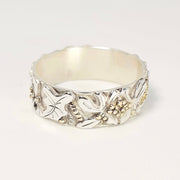 Hand crafted in sterling silver and 9ct gold, this open hawthorn ring is the perfect gift - you cannot get the size wrong!