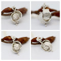 Each leaf is hand embossed with lace, giving the surface a rich but subtle texture like the crumpled leaves that keep little dormice warm through winter. Three leaves can rotate around Beechnut as she sleeps, so when you wear your locket, she is your secret, kept safe until you choose to open the beech leaves to reveal her in her crocheted wire nest. Snug as a, well, dormouse in a nest!