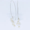 Crocheted by hand and each earring set with 5 freshwater pearls, every pair of earrings is a one off. The silver picks up the light and sparkles around the soft glow of the creamy pearls. The fine silver is whiter than the sterling ear wire, so as it twists and turns to make the bud casing, it catches the light, bouncing it around the pearl, enhancing the pearl's natural glow.
