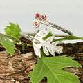 Set to a size O, this adjustable ring will easily fit from a size M to a size Q. Set with three 1mm rubies in a cluster of hawthorn berries.