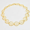 Entirely handmade, the necklace is made up for 18 individually crafted lace panels in fine silver, 9ct or 18ct gold. Strengthened on a solid frame, the necklace sits neatly around the curve of your neck.
